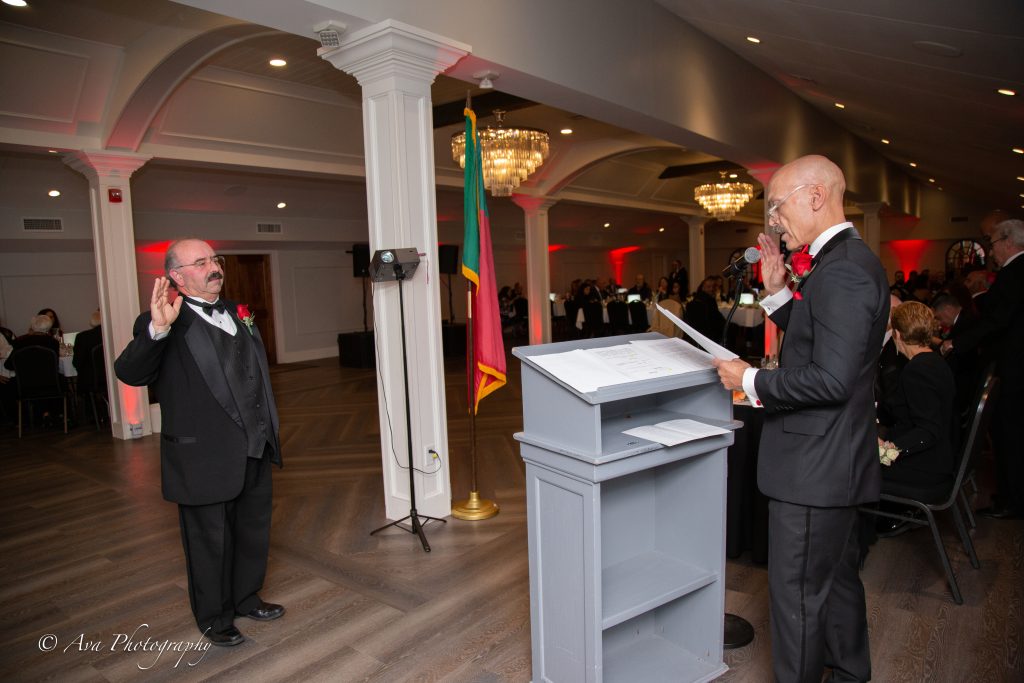 Armando Pereira prestando juramento como presidente reeleito da sociedade perante o advogado Marc J. Santos. AVA Photography/PHS