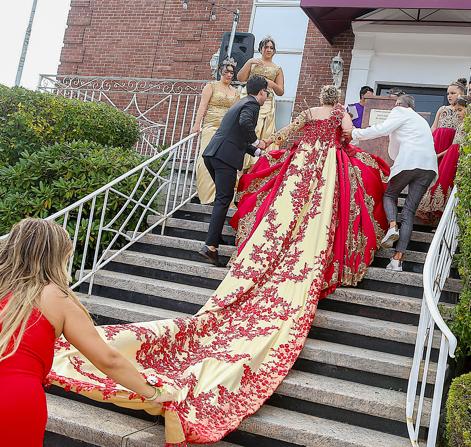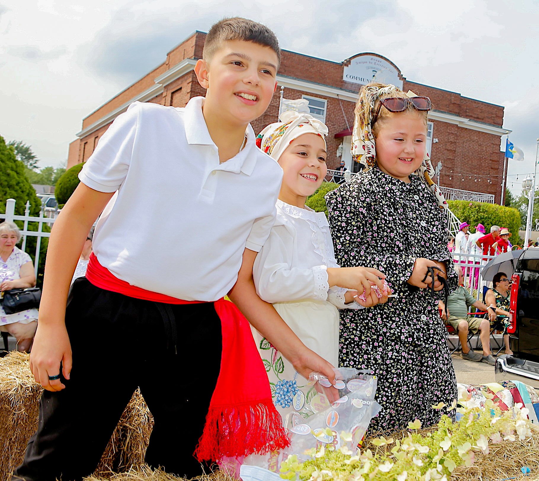 Um aspeto do cortejo da rainha com Kayla Botelho e Jasmine Teixeira, em frente à sede dos Amigos da Terceira de Rhode Island. Augusto Pessoa/PT