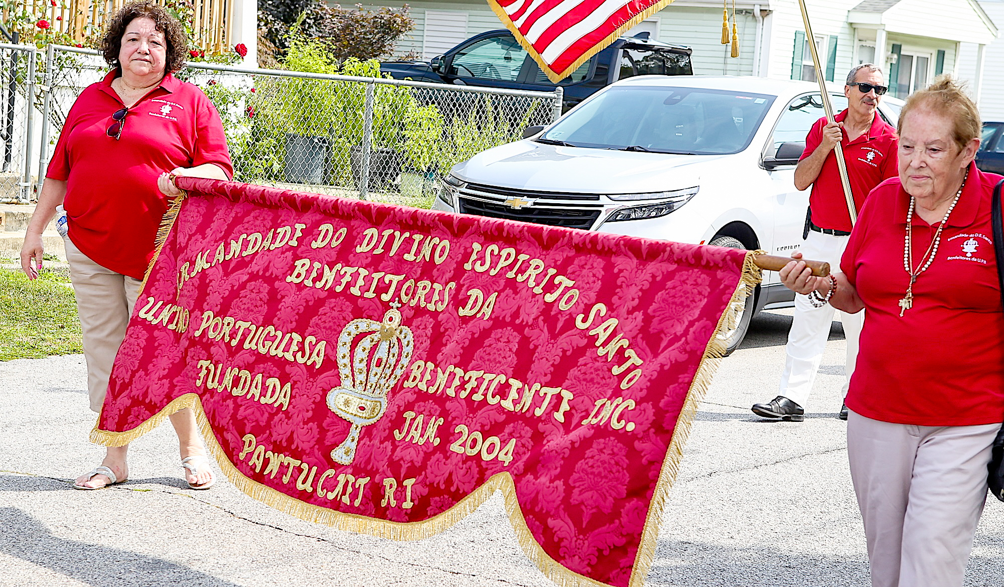 José e Ilda Botelho com Jessica Teixeira durante a procissão na festa de São Vicente de Paulo dos Amigos da Terceira em Pawtucket, RI. Augusto Pessoa/PT