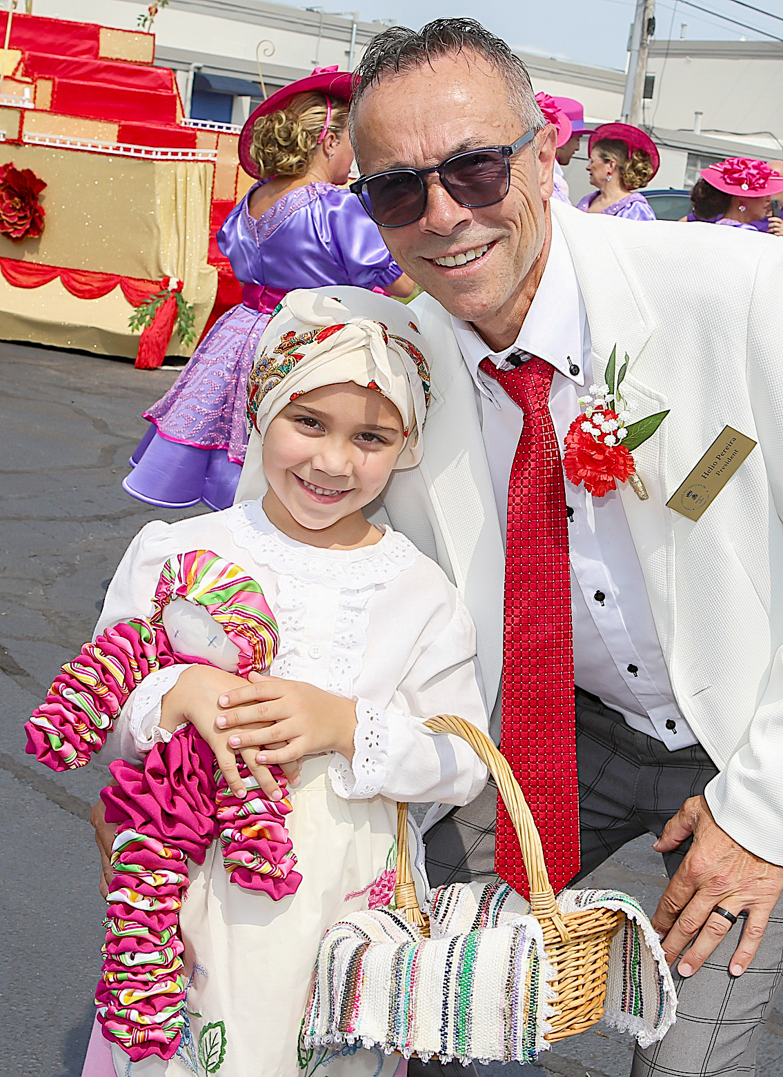 A Irmandade do Espírito Santo da União Portuguesa Beneficente esteve representada nas festas de São Vicente de Paulo. Na foto à esquerda, o presidente dos Amigos da Terceira com uma menina no cortejo etnográfico. Augusto Pessoa/PT
