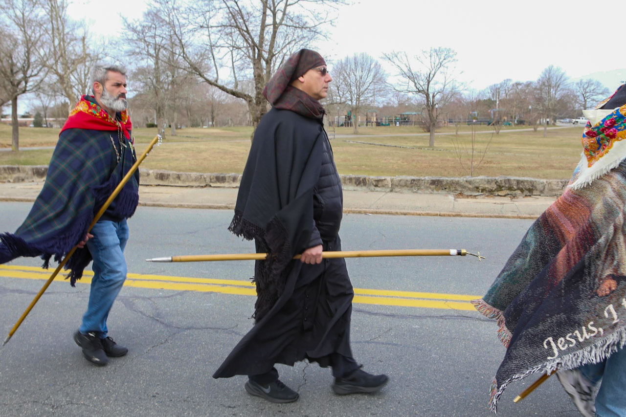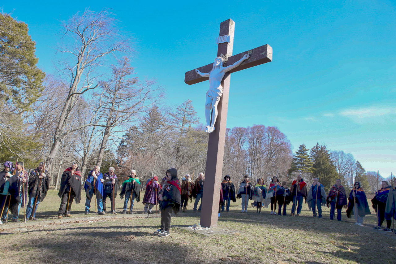 A igreja de Santa Isabel, Bristol, recebeu cerca de 60 romeiros também em Domingo de Ramos. Atravessamos Bristol e deparámos com o grupo dos romeiros na direção ao Columbus Fathers, onde existe uma cruz de grande tamanho virada para a baía de Narragansett. O mestre Luís notou a presença do PT e pediu ao cerca dos 60 romeiros presentes em volta da cruz um Pai Nosso e uma Avé Maria pelo nosso trabalho em dar vida aos romeiros anualmente, que, caso contrário, a sua dedicação, fé e esforço passaria despercebido.