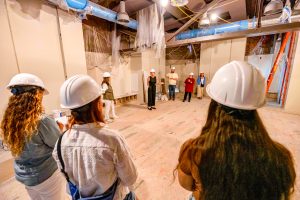 Molly McCarthy, “Director of Development”, mostra aos jornalistas todos os pormenores da nova sala localizada no segundo piso do prédio e destinada a membros. Drew Pion/Zeiterion